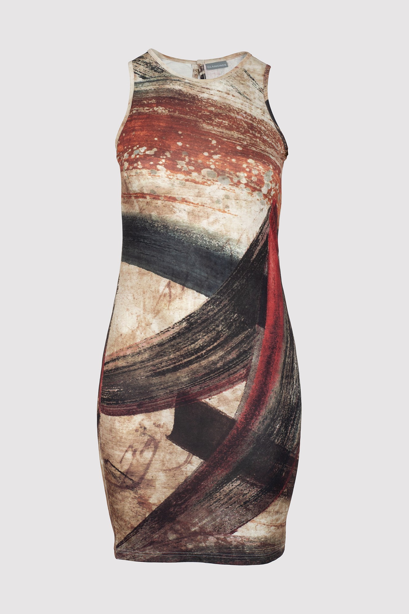 Elegantní přiléhavé šaty s výrazným geometrickým vzorem. Šaty mají zapínání na jeden knoflík za krkem.