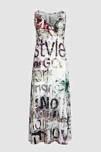 Dlouhé letní šaty s novinovým potiskem