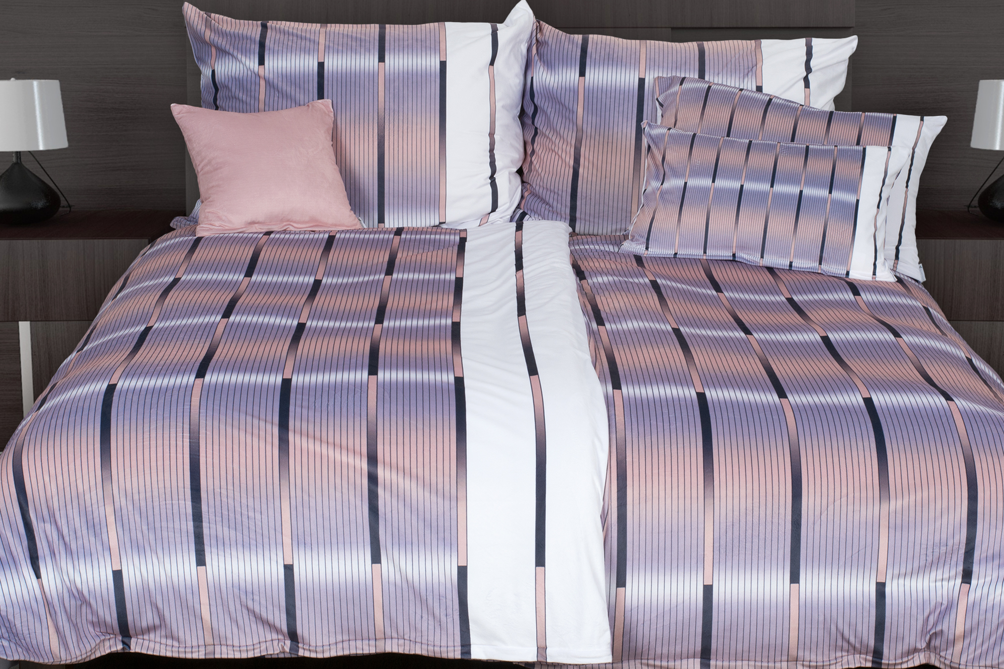 Povlečení s pruhy v bílé, šedé a béžové kombinaci