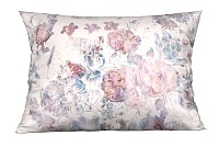 Na smetanově bílém podkladu je ztvárněný růžovofialový květinový motiv v tzv. vypraném efektu. Vzor tak působí netradičně a vynikne v každém stylu ložnice.