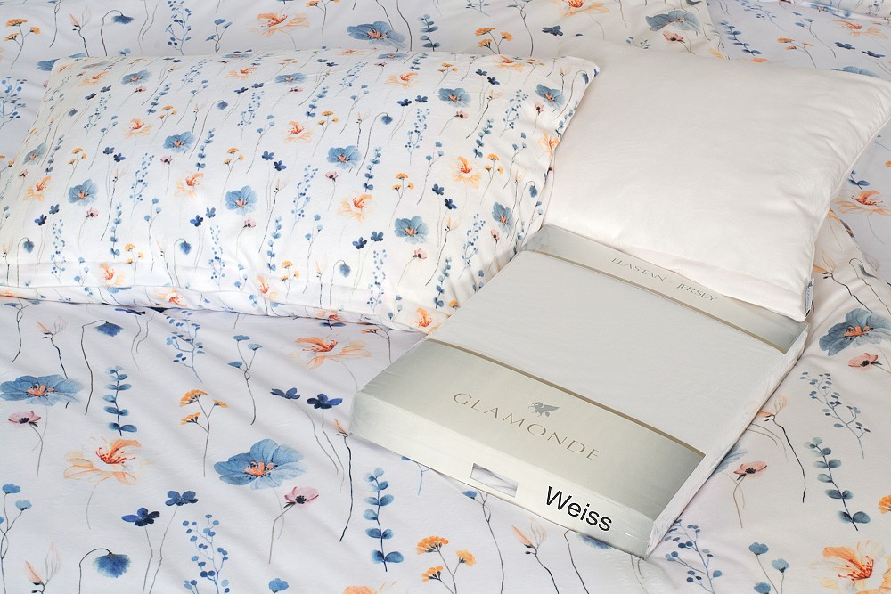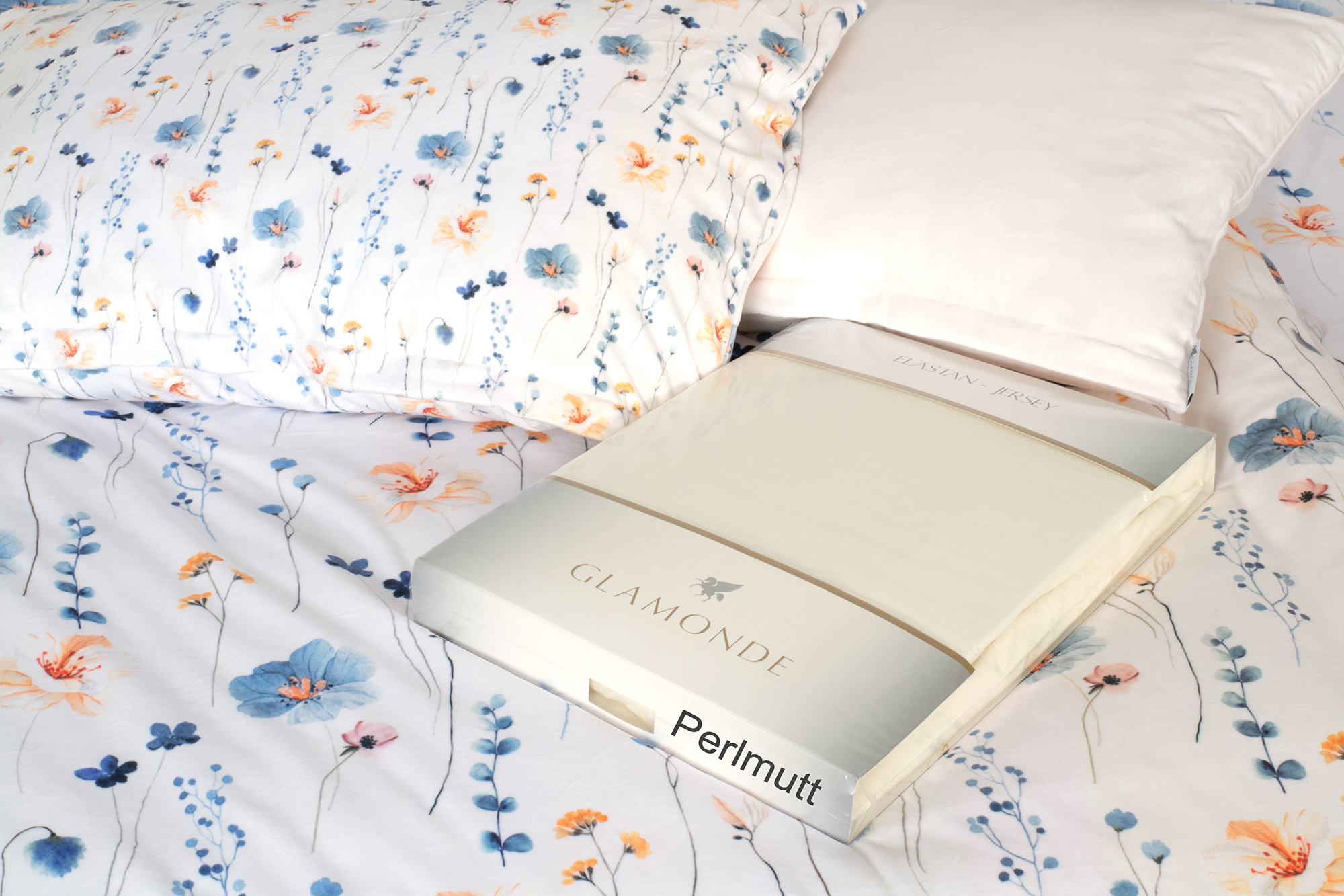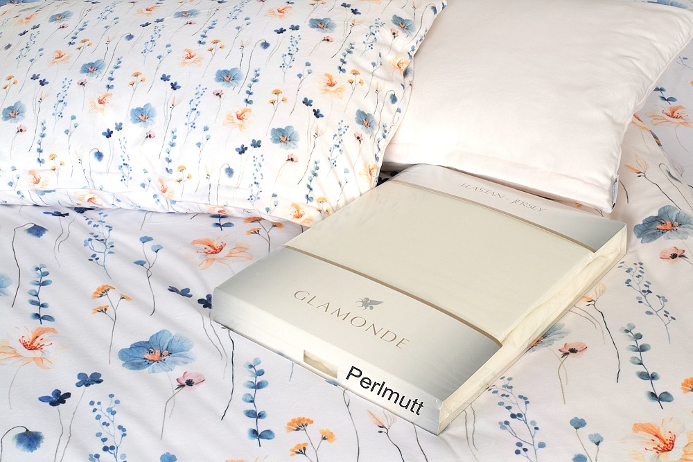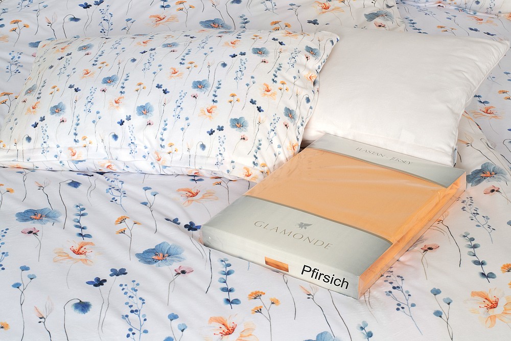 Doporučená barva prostěradla: Hellblau Perlmutt Pfirsich Weiss