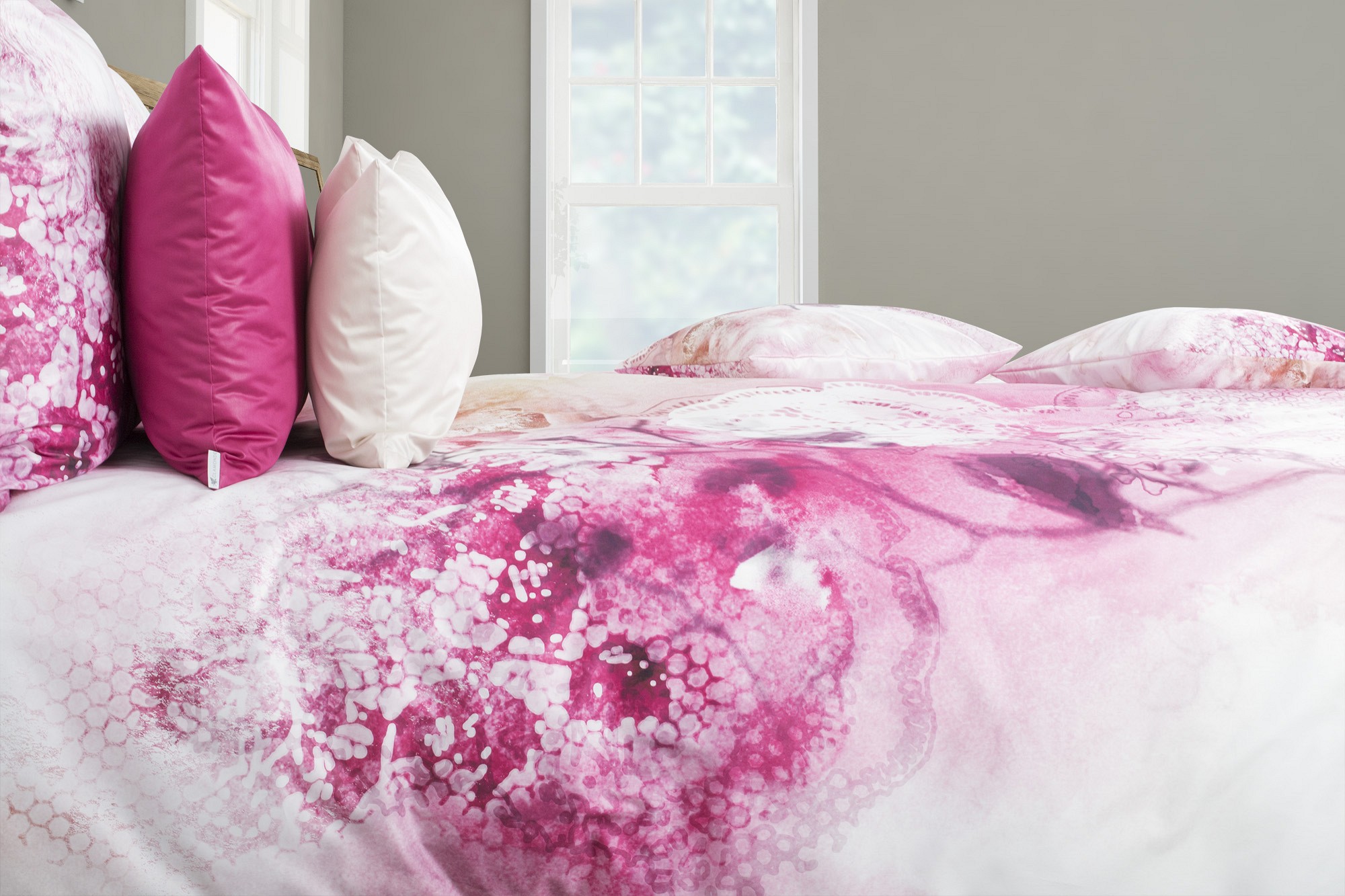 Tlumené odstíny růžové a fialové se střídají s jasně zářivými tóny. Povlečení působí velmi něžně, navozuje pocit klidu a romantického snění.