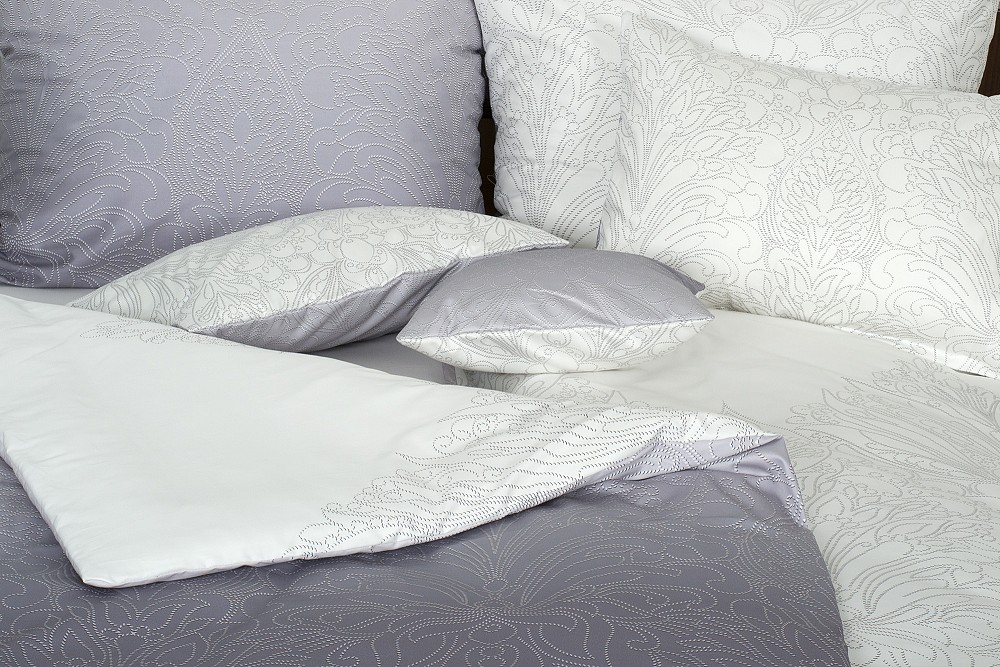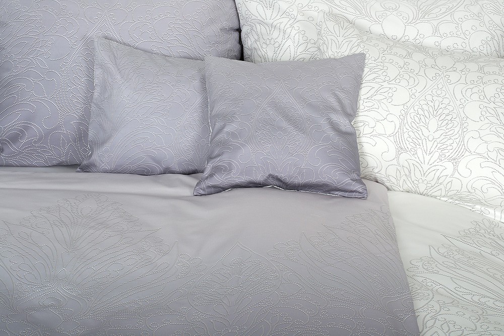 Elegantní povlečení s decentním květinovým ornamentem natištěné v kombinaci přední šedé a zadní bílé strany.