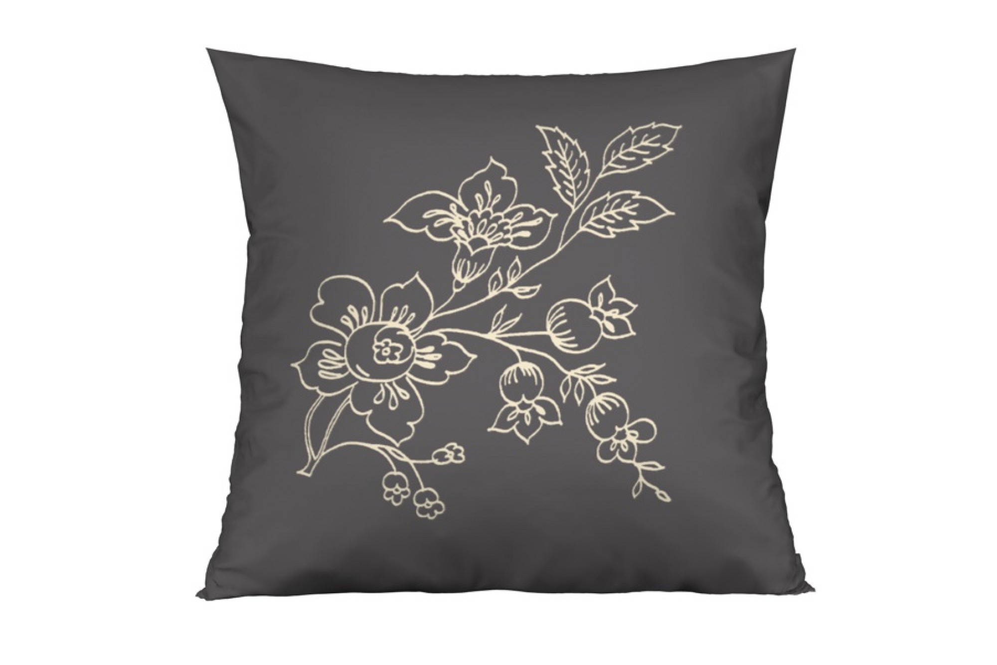 Hlavním motivem tohoto elegantního vzoru je velká béžová květina na šedém podkladě.