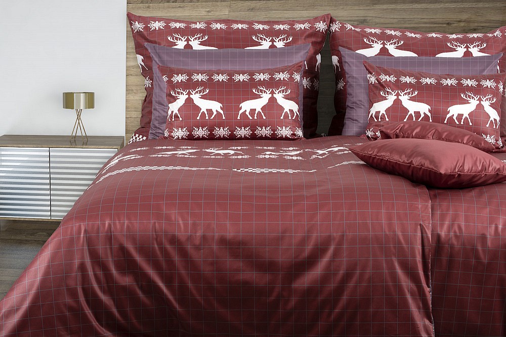 Překvapivá kombinace vínové a fialové barvy ve spojení s vánočními motivy vykouzlí ve vaší ložnici tu pravou sváteční atmosféru.