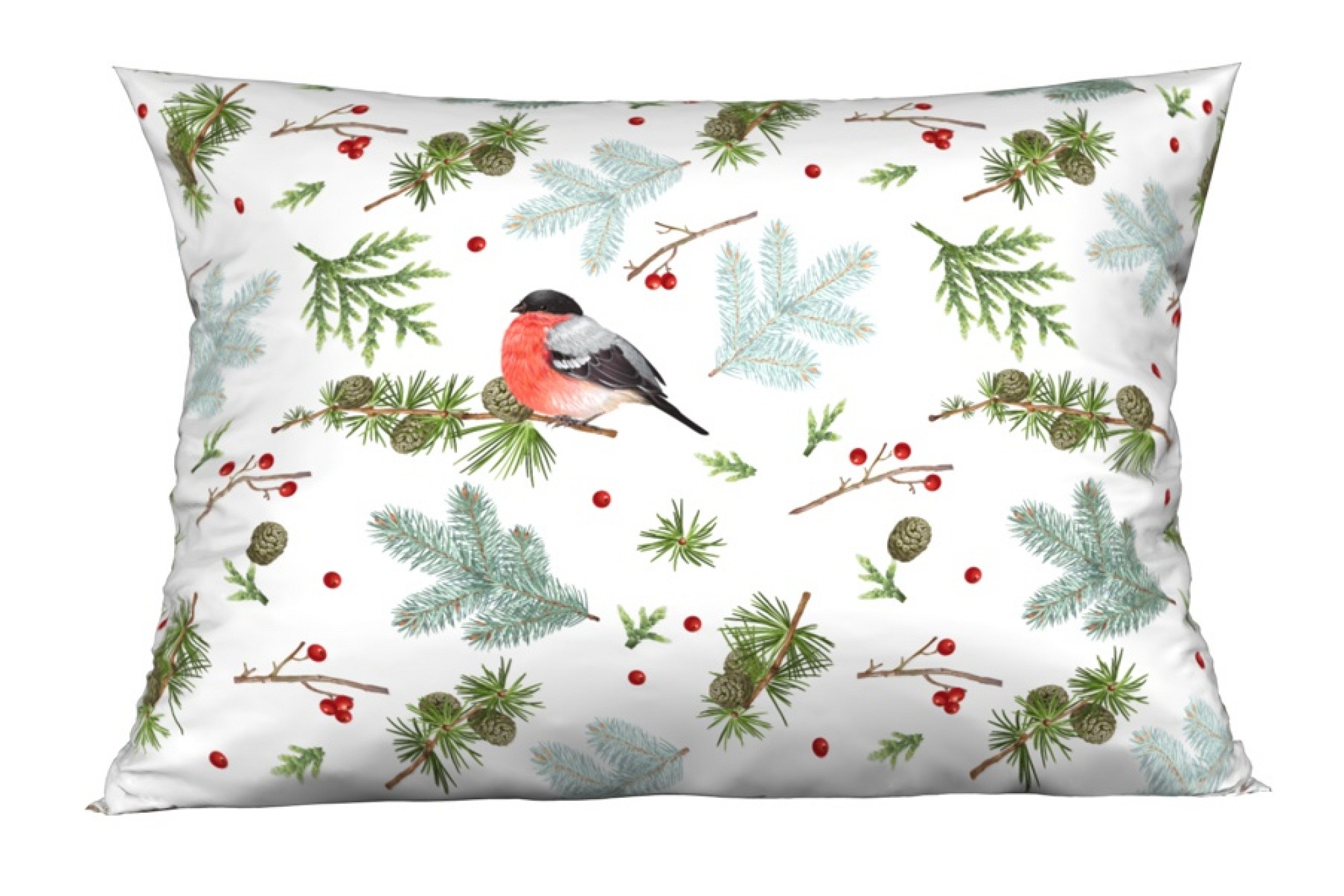 Povlečení Rubora od Glamonde přináší do ložnice kouzlo přírody a jemnou eleganci. Dominantou vzoru je půvabný červený ptáček, jehož výrazná barva a detailní zpracování působí živě a harmonicky. Obklopují jej subtilní větvičky jehličnanů, které celé kompozici dodávají lehkost, vzdušnost a klidný, přírodní charakter. Kombinace jemných linií větviček a sytě červeného akcentu vytváří vyvážený, esteticky působivý motiv, který zaujme na první pohled.