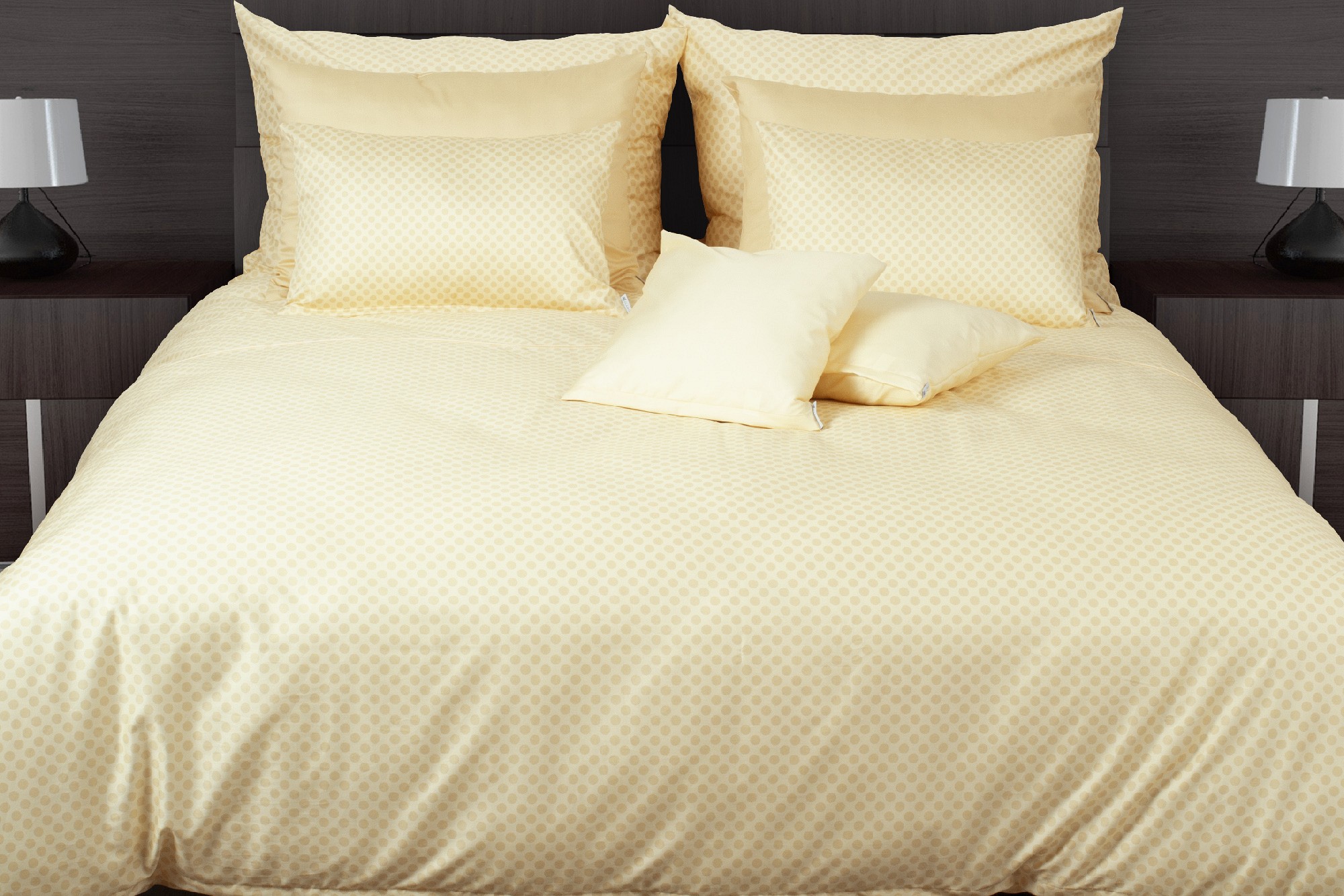 Jemně žluté puntíkové povlečení vás přesvědčí o tom, že v jednoduchosti je krása. Barevné provedení tón v tónu je efektní, nadčasové a vykouzlí ve vaší ložnici neopakovatelnou atmosféru.