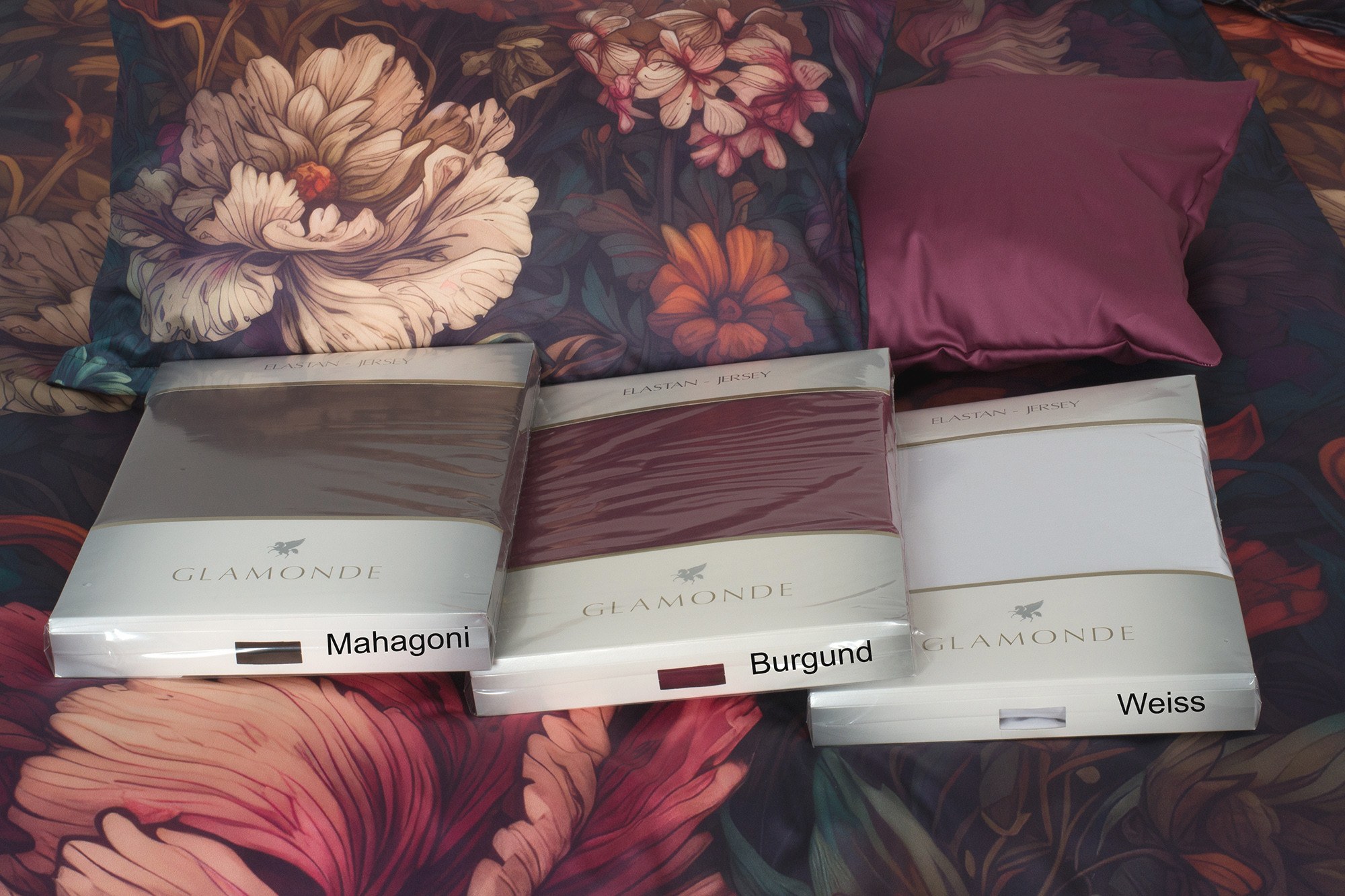 Doporučená barva prostěradla: Burgund Mahagoni Weiss